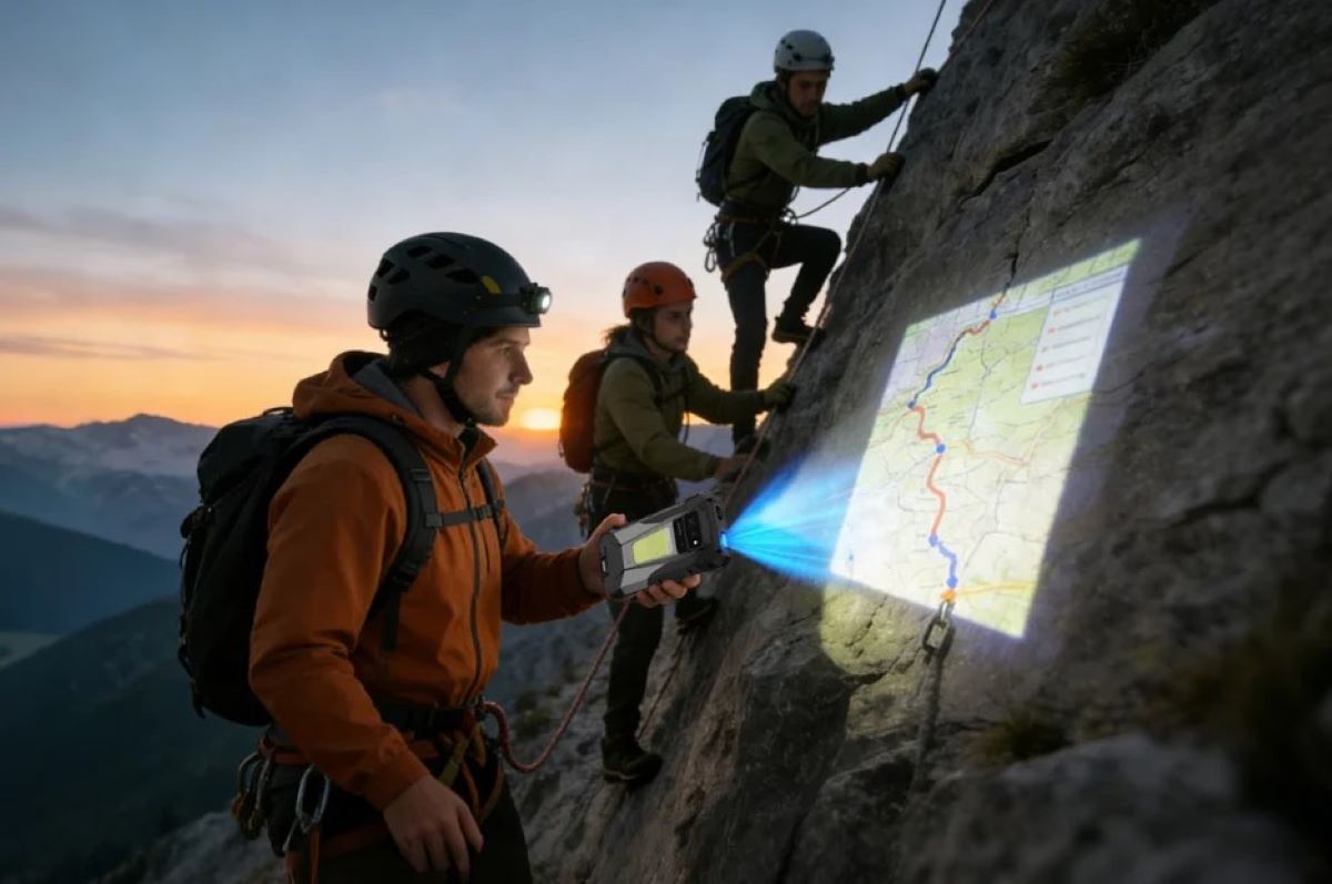 Fitur unggulannya adalah proyektor DLP terintegrasi, yang mampu memproyeksikan konten hingga resolusi 1920×1080 dengan kecerahan 220 lumens. Autofokus laser, koreksi keystone ±40°, dan aktivasi satu tombol memungkinkan penyebaran yang cepat. Proyektor mendukung beberapa mode daya, memberikan penggunaan hingga enam jam, sehingga cocok untuk pengarahan lapangan, pelatihan, atau hiburan luar ruangan tanpa peralatan tambahan.