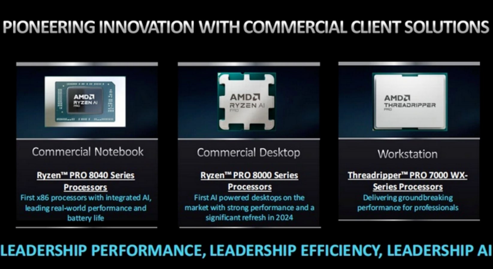 Sukoharjonews.com – AMD telah mengumumkan rangkaian prosesor komersial seri Ryzen PRO baru yang dibangun dengan kombinasi arsitektur mutakhir: Zen 4 untuk CPU, RDNA 3 untuk GPU, dan XDNA untuk NPU. Jajaran produk ini melayani laptop (Ryzen PRO 8040) dan desktop (Ryzen PRO 8000), menawarkan total 16 prosesor.