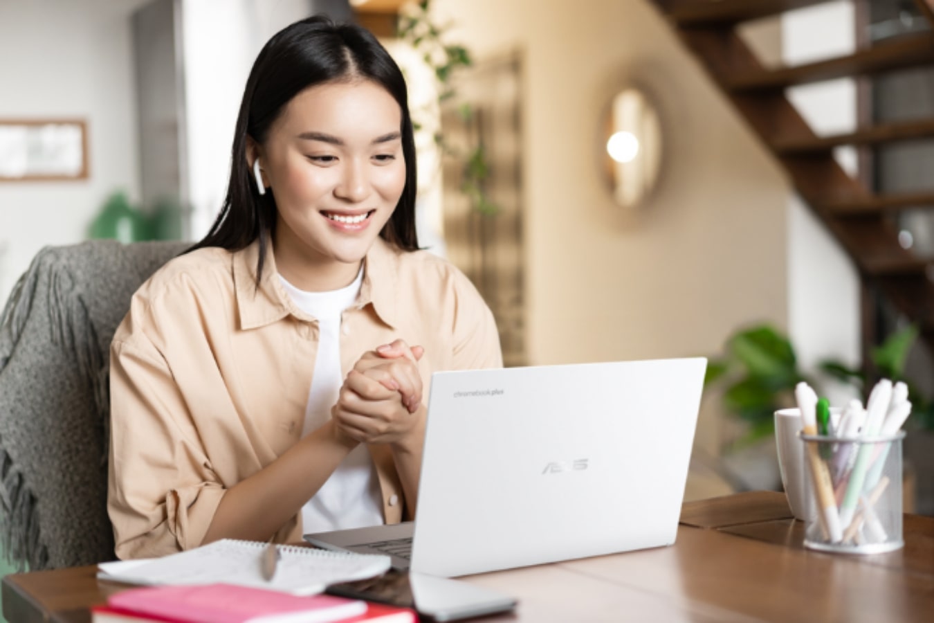 Dengan Chromebook, pengguna dapat mengakses berbagai pilihan melalui Google Play Store, termasuk Google Docs, Google Apps, Adobe Photoshop, dan Adobe Express. Laptop ini dilengkapi dengan webcam FHD 1080p yang dilengkapi alat panggilan video bertenaga AI dan penutup yang dapat dibuka untuk privasi.