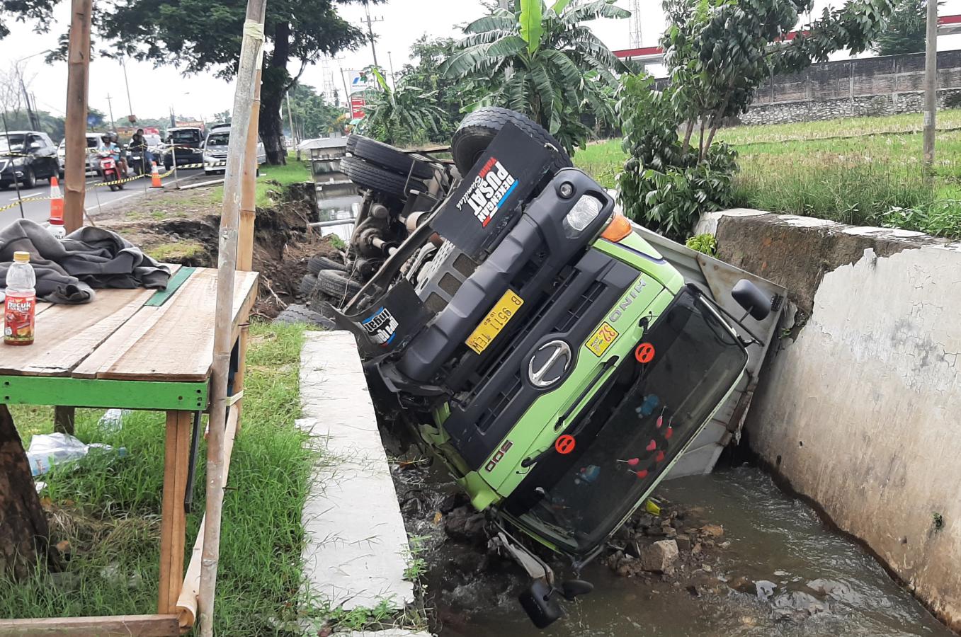 “Tergulingnya sudah kemarin, infonya mau parkir tapi talud selokan ambrol,” ujar Wardi, petani disekitar lokasi.
