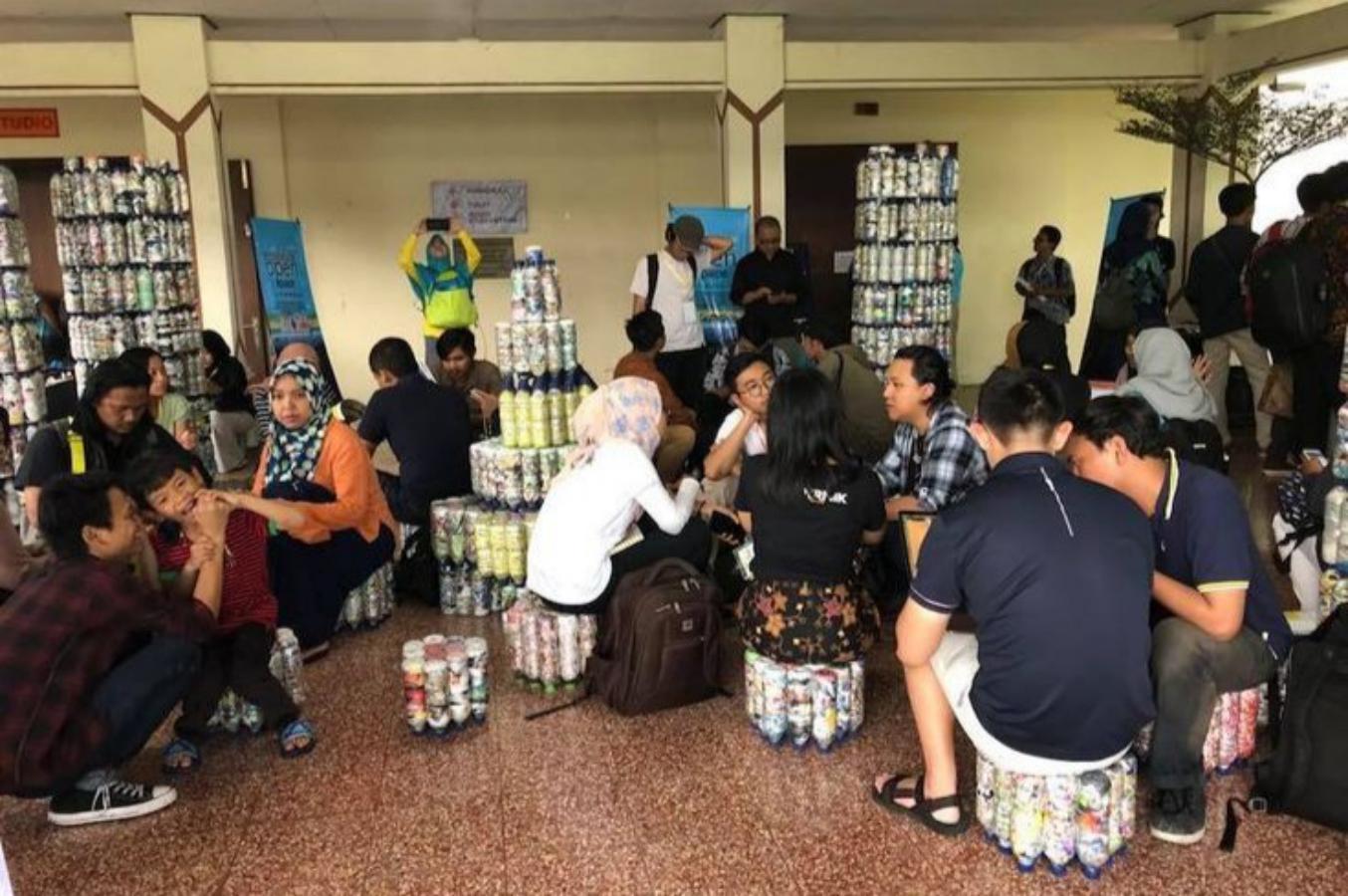 Eco brick sebagai bahan dasar pembuatan berbagai produk, termasuk furnitur atau konstruksi bangunan.