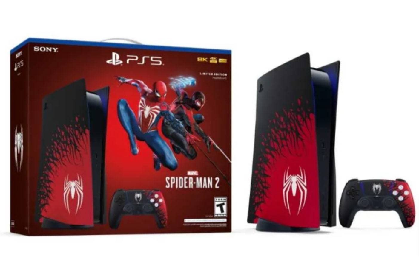 Bundel tersebut menghadirkan PS5 khusus yang menampilkan desain khusus yang terinspirasi oleh game Spider-Man 2 yang akan datang. Ini juga tercermin dalam pengontrol PS5.