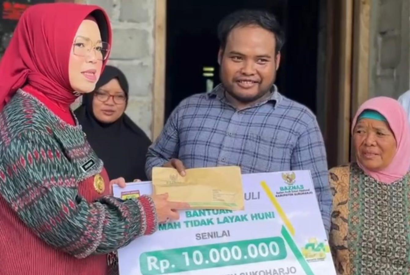 Sukoharjonews.com – Bupati Sukoharjo, Etik Suryani bersama Wakil Bupati, Eko Sapto Purnomo dan Badan Amil Zakat Nasiomal (Baznas) kembali “blusukan” ke kampung-kampung untuk menyalurkan bantuan rehab Rumah Tidak Layak Huni (RTLH), Selasa (9/9/2025). Kali ini, bantuan diserahkan untuk 13 warga di dua kecamatan.