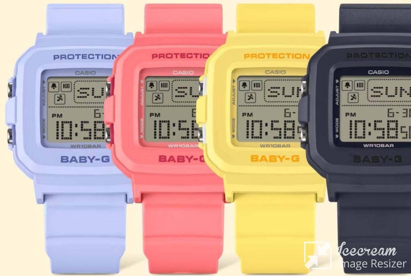 Kuartet baru ini termasuk dalam seri Baby-G BGD-10KH, yang kini tersedia untuk pre-order di Jepang. Seri ini mencakup empat warna pastel — hitam (BGD-10KH-2CJR), ungu (BGD-10KH-2BJR), merah muda (BGD-10KH-4JR), dan kuning (BGD-10KH-9JR) — masing-masing dilengkapi casing resin matte, tali yang senada, dan tempat aksesori berbentuk hati. Pemilik dapat melepas jam tangan dari talinya dan menjepitkannya ke tas, kantong, atau gantungan kunci, sehingga tetap mempertahankan etos desain Baby-G yang playful.