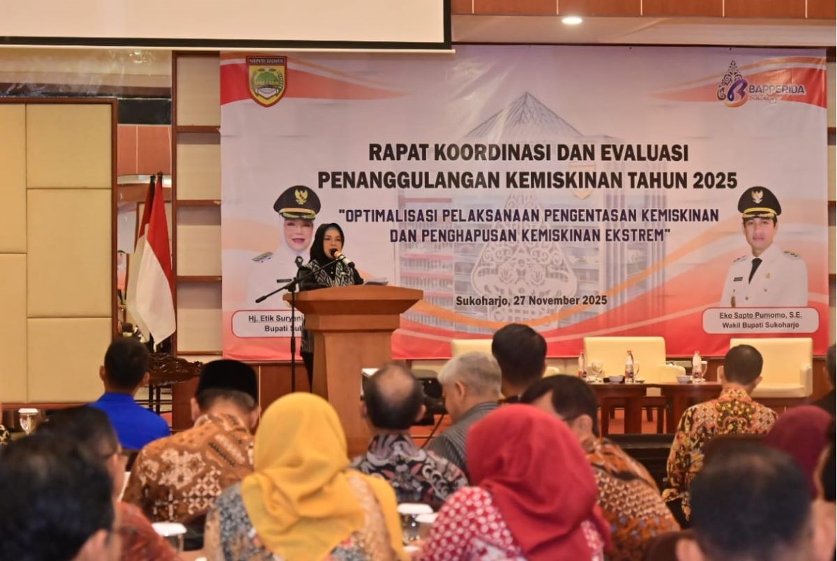 Sukoharjonews.com – Pemkab Sukoharjo menggelar Rapat Koordinasi Penanggulangan Kemiskinan, Kamis (27/11/2025). Dalam rakor tersebut terungkap angka kemiskinan Sukoharjo tahun 2025 turun 0,64% dibandingkan tahun 2024.