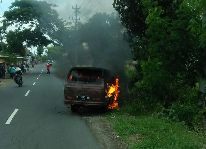 Sukoharjonews.com (Sukoharjo) – Warga yang melintas di Jalan Kelurahan Sonorejo, Kecamatan Sukoharjo dibuat kaget ketika mendapati sebuah mobil tua Mitsubishi bernopol N 1610 AF terbakar, Kamis (29/11). Terbakarnya mobil tersebut terjadi sekitar pukul 09.45 WIB. Tidak ada korban jiwa dalam kasus kebakaran tersebut. Kebakaran mobil itu sendiri diduga karena terjadi korsleting.