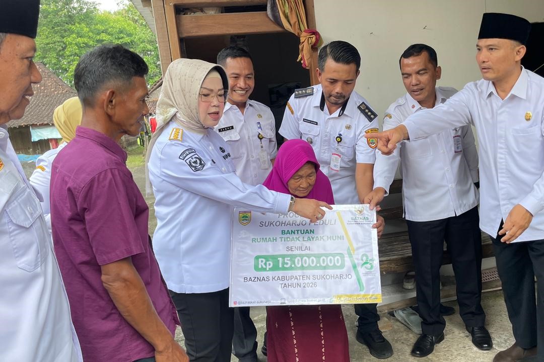 Sukoharjonews.com – Badan Amil Zakat Nasional (Baznas) Sukoharjo kembali menyalurkan bantuan rehab RTLH. Kali ini, bantuan disalurkan di empat kecamatan untuk sembilan penerima dengan total bantuan Rp147 juta. Bantuan diserahkan langsung Bupati Etik Suryani, Rabu (29/4/2026).