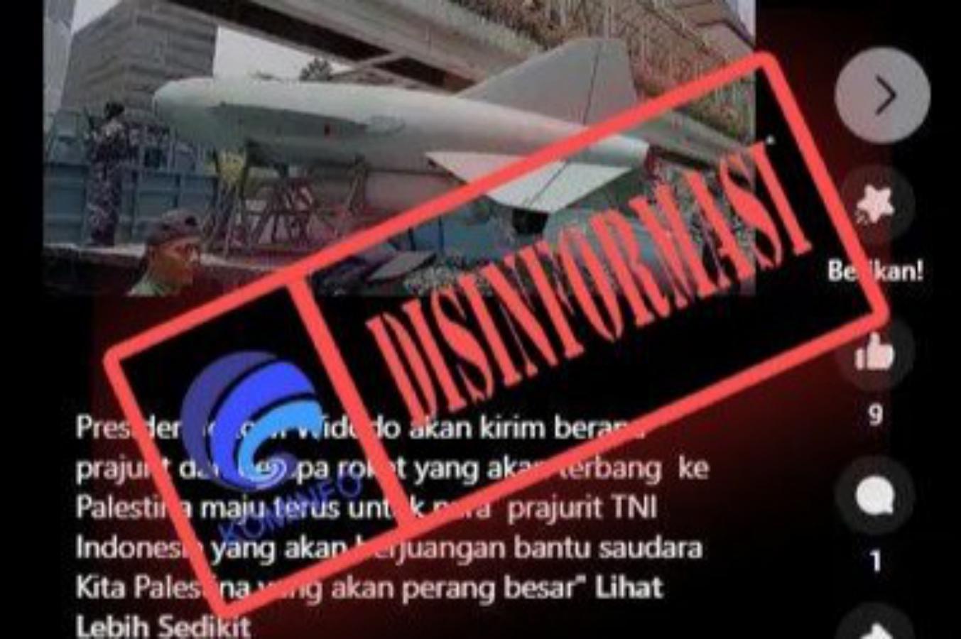 Beredar sebuah unggahan foto di media sosial Facebook yang diklaim sebagai penampakan roket yang akan dikirimkan Presiden Joko Widodo (Jokowi) ke Palestina.