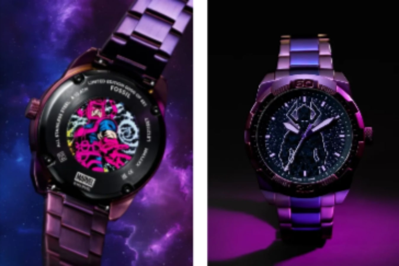 Jam tangan ini dilengkapi tali logam berwarna ungu yang melengkapi desain dial tengah. Jam tangan ini hadir dalam kemasan khusus dengan pin kerah Silver Surfer dan sertifikat keaslian. Hanya diproduksi sebanyak 683 unit.