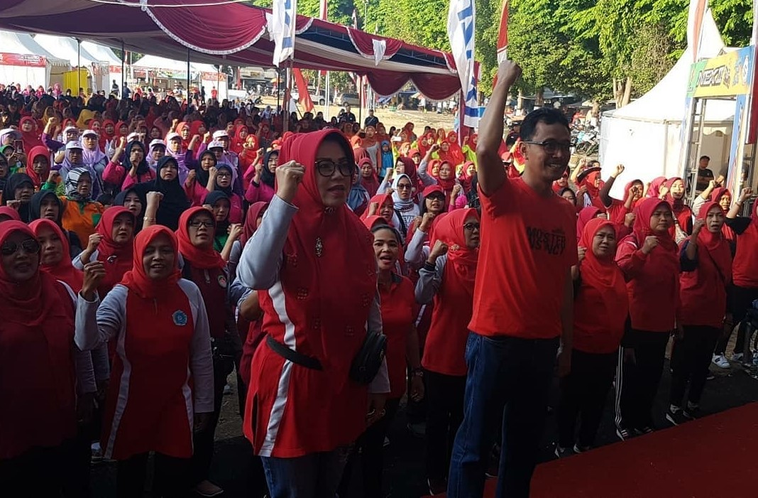 Sukoharjonews.com (Sukoharjo) – Dalam rangka menyemarakkan HUT Kemerdekaan RI Ke-74, ribuan wanita di Sukoharjo mengikuti senam sehat wanita unggul di Alun-Alun Satya Negara, Minggu (25/8). Dalam kegiatan tersebut dihadiri oleh Ketua TP PKK Sukoharjo Etik Suryani dan Sekda Agus Santosa. Senam sehat wanita unggul sendiri diikuti ribuan peserta yang merupakan kader PKK.