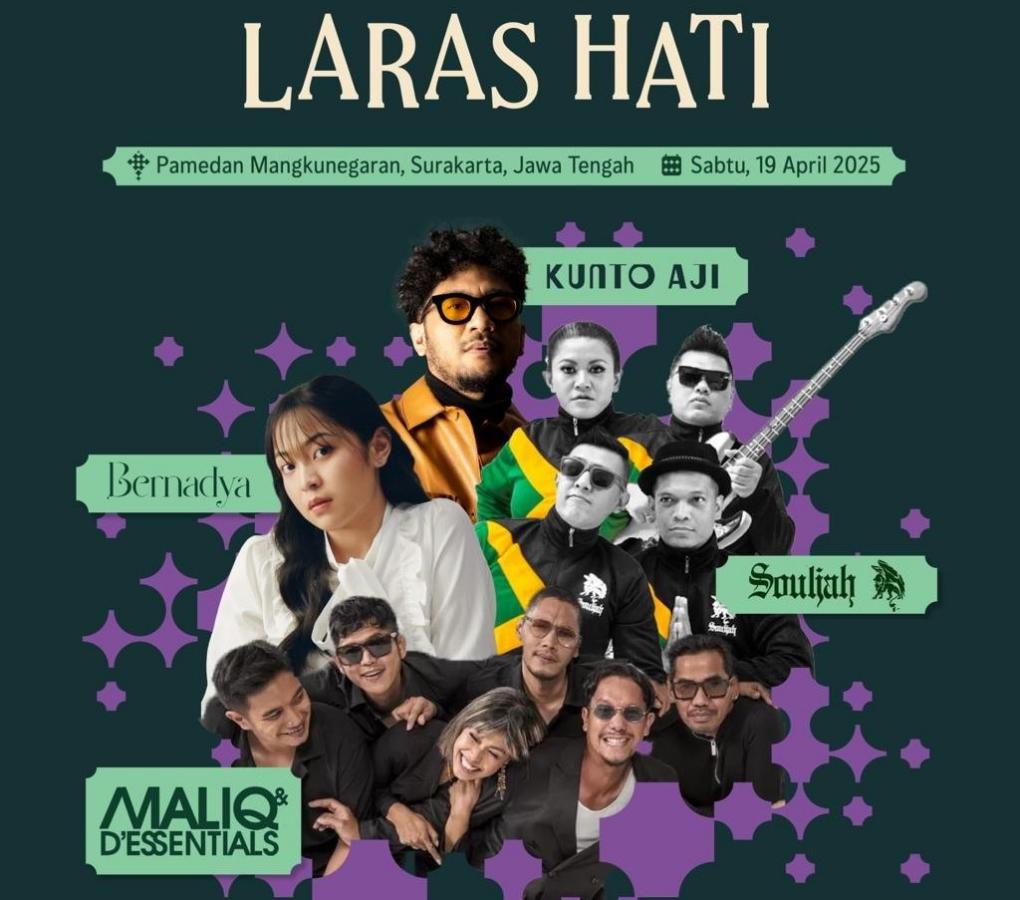 Sejumlah artis yang dijadwalkan manggung di Mangkunegaran Laras Hati adalah para penyanyi dan grup musik papan atas tanah air seperti Kunto Aji, Bernadya, Souljah, dan Maliq & D’Essentials.