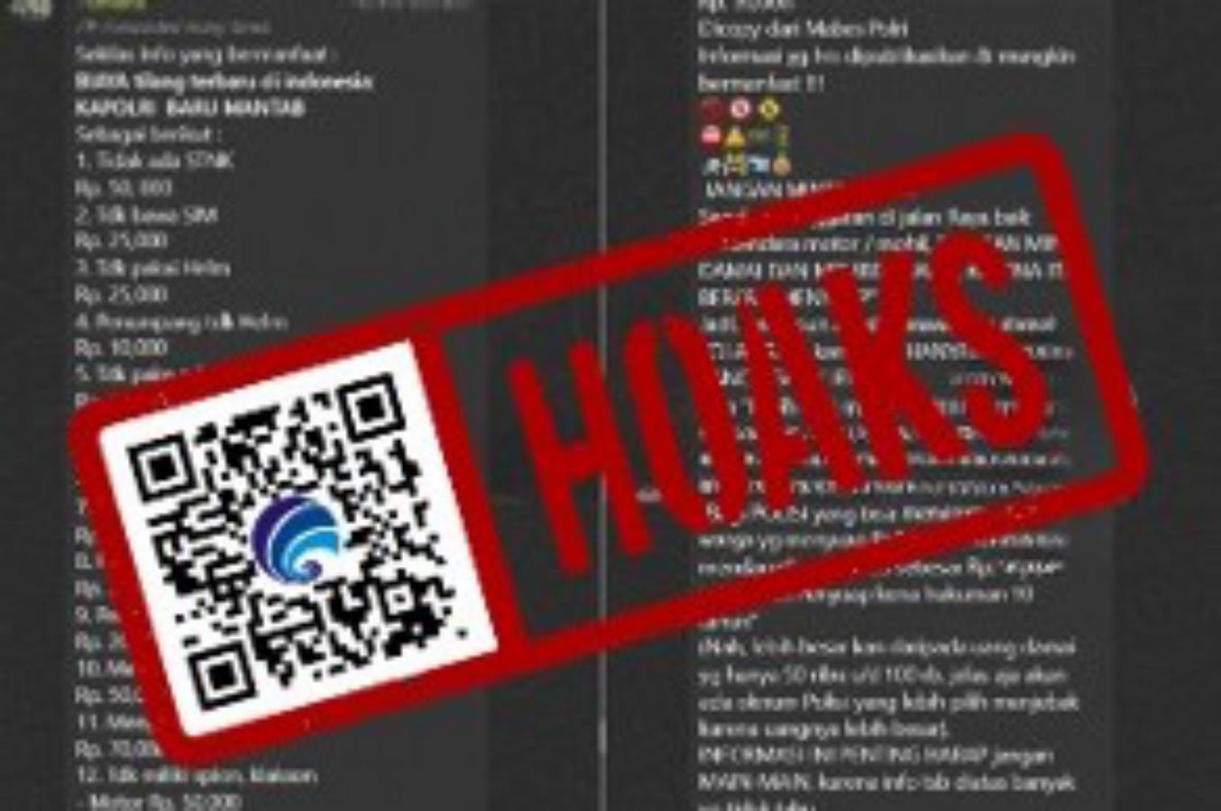Beredar pesan WhatsApp yang mengeklaim bahwa ada biaya tilang terbaru dan hadiah Rp10 juta jika bisa membuktikan ada warga yang menyuap polisi.