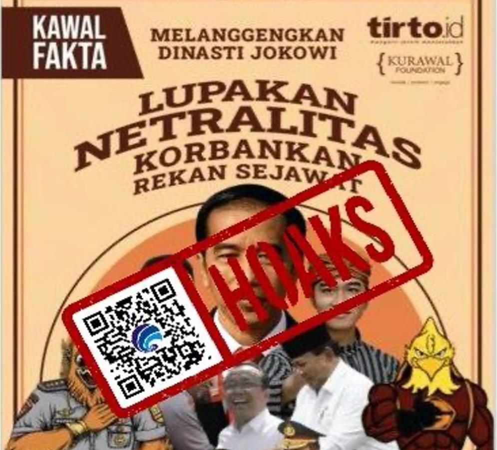 Beredar pada aplikasi perpesanan WhatsApp sebuah buku elektronik atau e-book berjudul “Melanggengkan Dinasti Jokowi, Lupakan Netralitas Korbankan Rekan Sejawat” yang diterbitkan oleh media daring Tirto dan Kurawal Foundation.