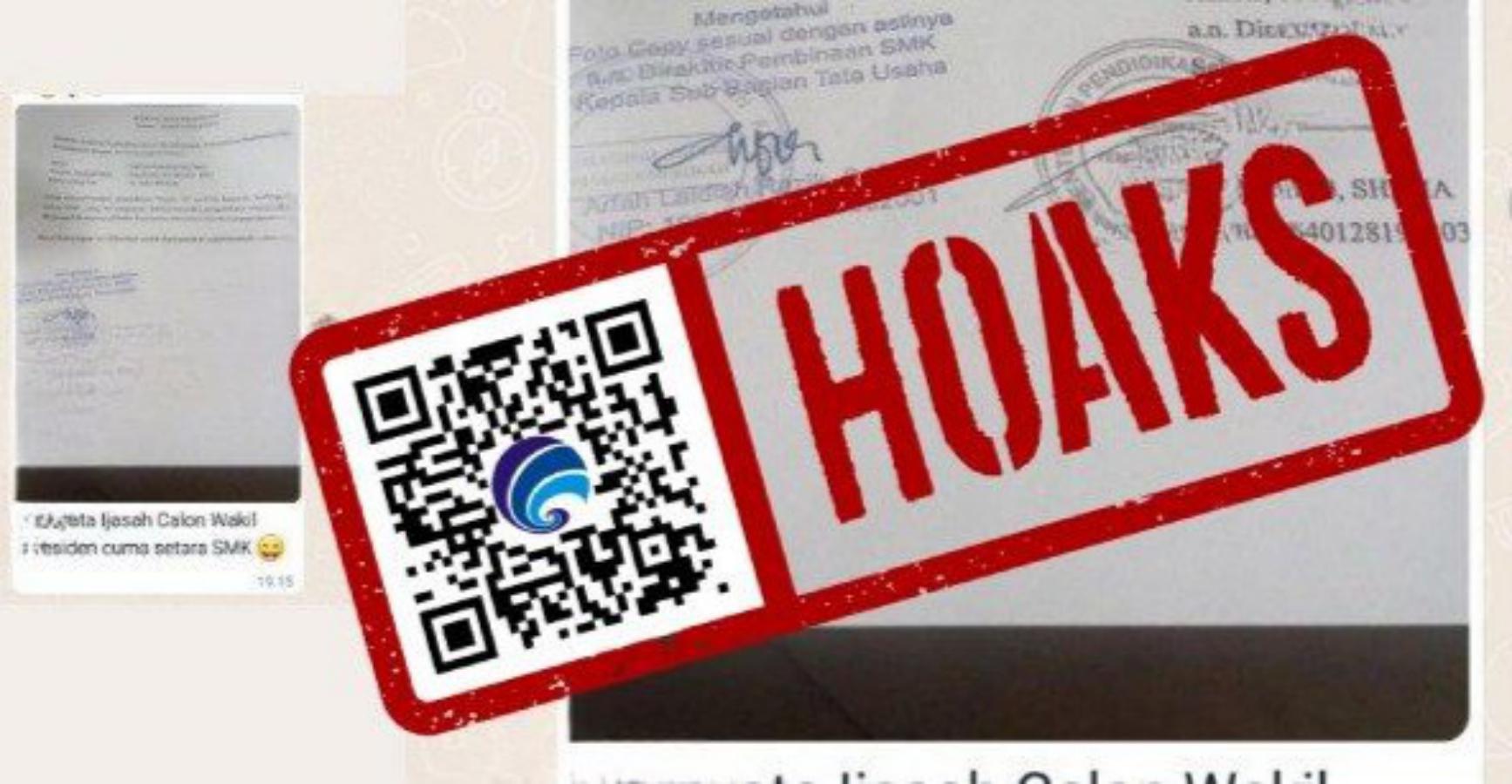 Sukoharjonews.com – Calon wakil presiden (cawapres) Gibran Rakabuming Raka kembali menjadi sasaran penyebaran hoaks. Kali ini, hoaks yang beredar berupa foto di Whatsapp yan memperlihatkan selenbar surat keterangan milik Gibran. Foto yang beredar diklaim sebagai ijazah Gibran hanya setara ijazah SMK.