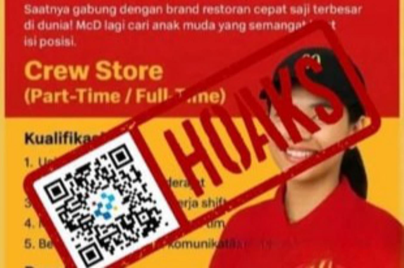 [HOAKS] Lowongan Kerja Kru McDonald’s Indonesia