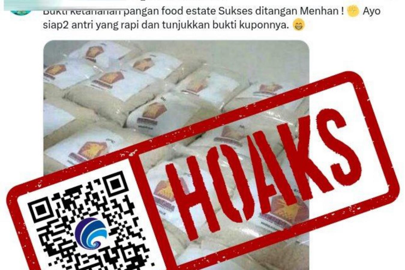 Beredar di media sosial X/Twitter sebuah unggahan yang mengeklaim bahwa Menteri Pertahanan (Menhan) Prabowo Subianto membagikan beras hasil ketahanan pangan food estate. Dalam unggahannya terlampir gambar berupa tumpukan beras yang diberi label Partai Gerindra dengan narasi “Bukti ketahanan pangan food estate sukses ditangan Menhan! Ayo siap2 antri yang rapi dan tunjukkan bukti kuponnya”.