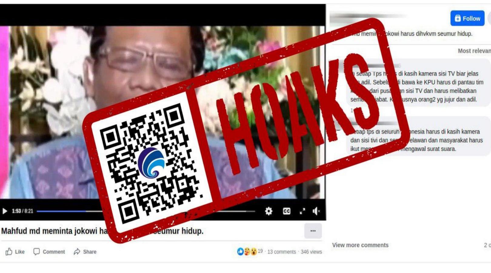 Sukoharjonews.com – Konten hoaks masih saja beredar di dunia maya. Kali ini, sebuah video hoaks muncul di Facebook yang mengeklaim Menkopolhukam, Mahfud MD memintaagar Presiden Joko Widodo(Jokowi) dihukum seumur hidup.