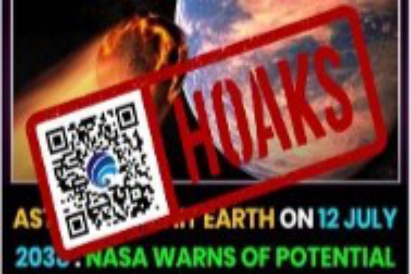Sukoharjonews.com – Sebuah unggahan hoaks muncul di media sosial Facebook. Unggahan tersebut mengeklaim jika Badan Penerbangan dan Antariksa Amerika Serikat atau NASA mengatakan bumi akan dihantam asteroid pada 12 Juli 2024.