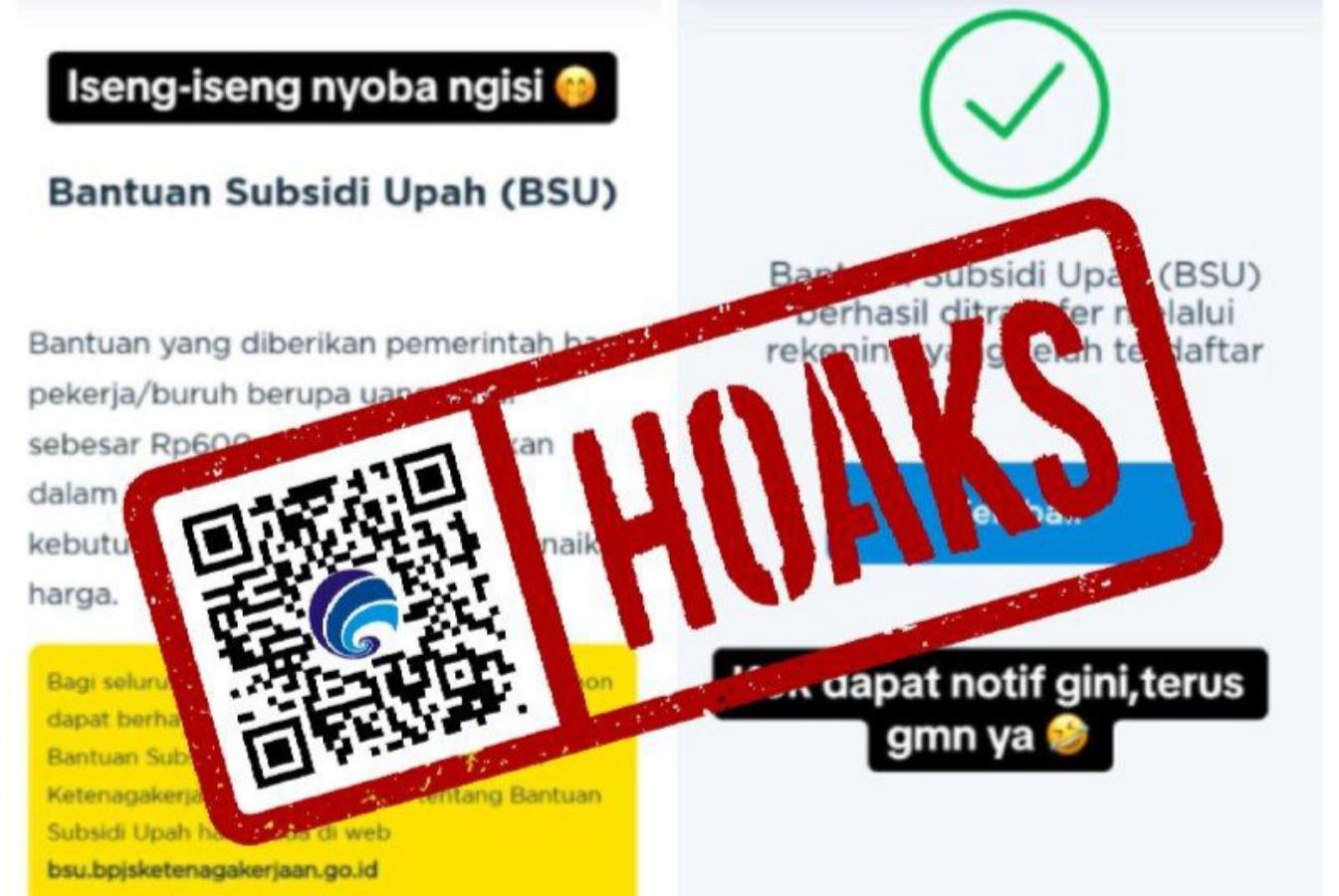 Sukoharjonews.com – Kali ini muncul sebuah hoaks terkait Bantuan Subsidi Upah (BSU) dari Badan Penyelenggara Jaminan Sosial (BPJS) Ketenagakerjaan. Hoaks berupa unggahan foto muncuk di TikTok yang mengeklaim BPJS Ketenagakerjaan memberikan BSU tahun 2023.