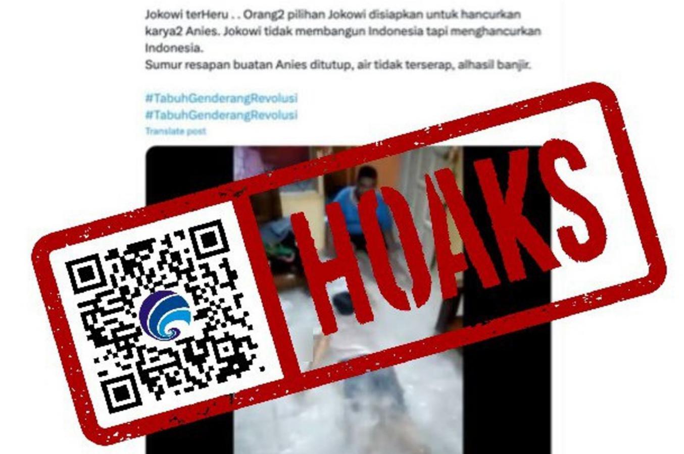 Sukoharjonews.com – Hoaks kali ini berupa video yang diunggah di X/Twitter dan mengeklaim jika sumur resapan yang dibuat diera Anies Baswedan saat menjabat Gubernur DKI sekarang ditutup dengan aspal sehingga menyebabkan banjir di ibukota.