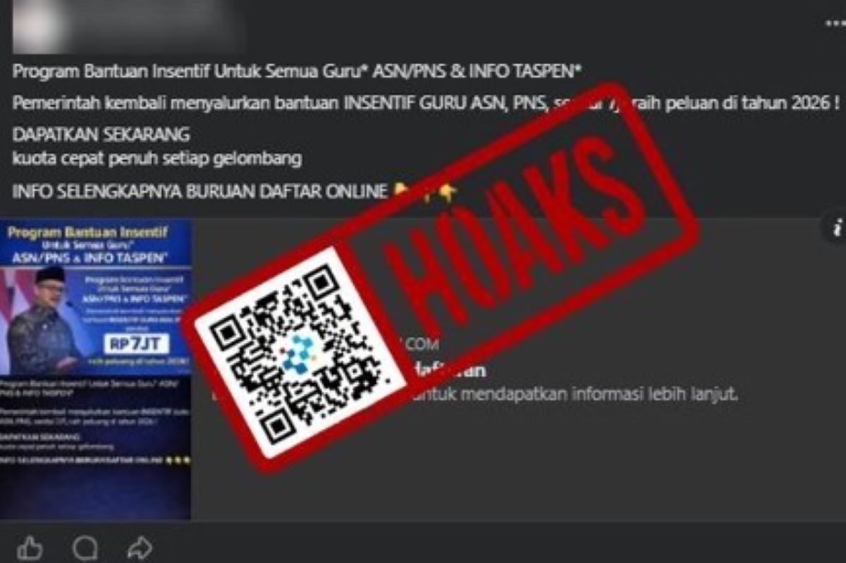 Beredar sebuah unggahan di media sosial Facebook yang mengeklaim adanya tautan untuk mendapatkan bantuan insentif Rp7 juta bagi guru berstatus Aparatur Sipil Negara (ASN).