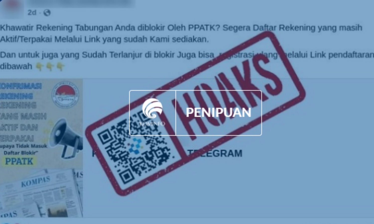 Beredar sebuah unggahan di media sosial Facebook berisi narasi dan tautan yang diklaim untuk membuka rekening yang terblokir. Unggahan tersebut juga mengatasnamakan Pusat Pelaporan Analisis Keuangan (PPATK).