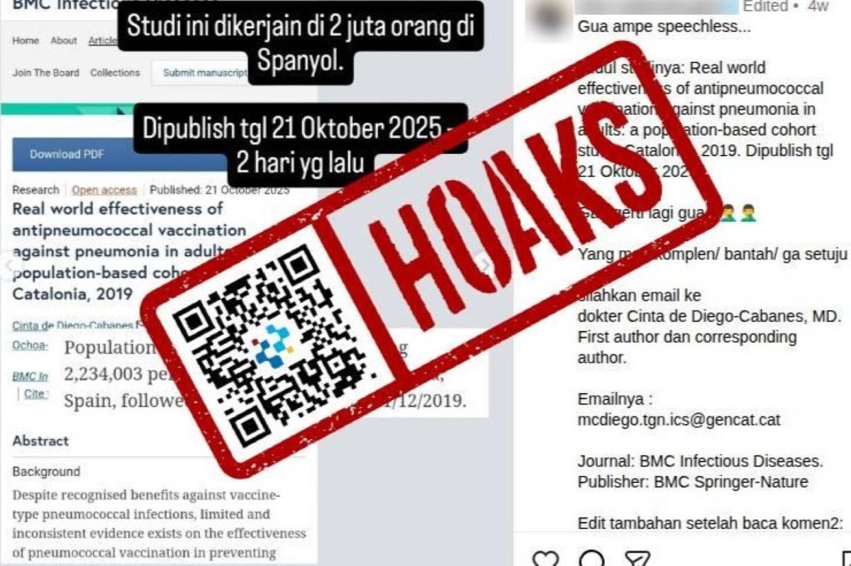 Beredar unggahan di media sosial Instagram dengan narasi yang mengeklaim vaksin pneumonia atau Pneumococcal Conjugate Vaccine (PCV) meningkatkan risiko pneumonia dan kematian, serta mempertanyakan efektivitas vaksin PCV pada anak.