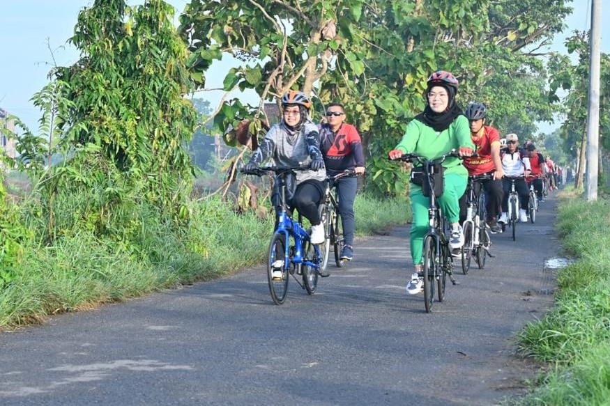 Kehadiran Bupati bersama pejabat lainnya disambut meriah oleh siswa sekolah dan juga masyarakat di sepanjang rute gowes. “Meski pandemi sudah melandai, olahraga menjadi salah satu upaya untuk menjaga kesehatan. Salah satunya dengan gowes seperti ini. Ya, sambang warga sekaligus menyerap aspirasi,” ujar Etik.