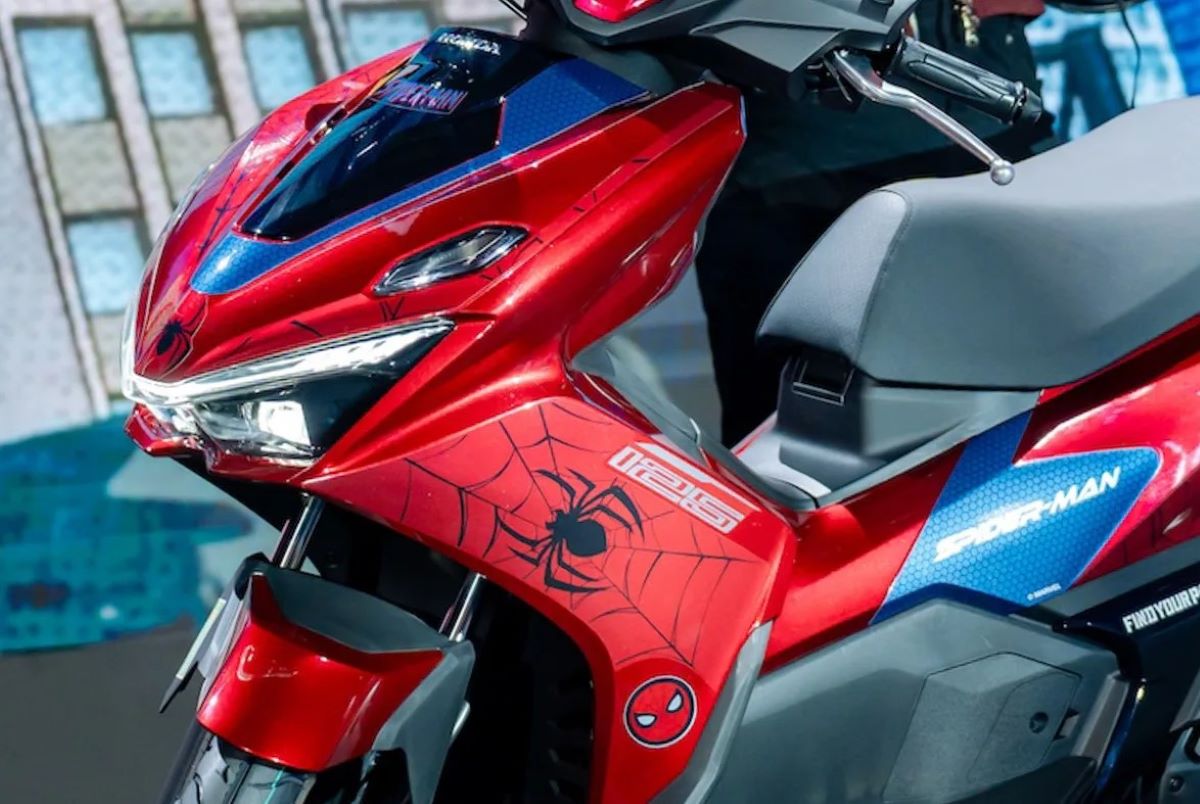 Motor ini mencolok dengan skema warna merah khas Spider-Man.