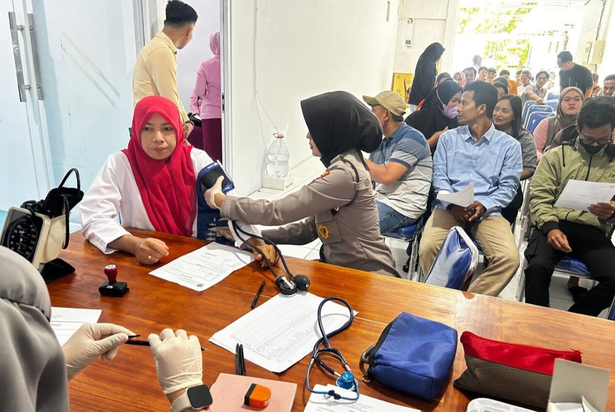 Pemeriksaan kesehatan tersebut diikuti sebanyak 76 peserta yang terdiri dari karyawan SPPG Polres Sukoharjo. Adapun kegiatan meliputi pengukuran tekanan darah, tinggi badan, berat badan, pemeriksaan kadar gula darah, pemeriksaan gigi, serta pemeriksaan urine.