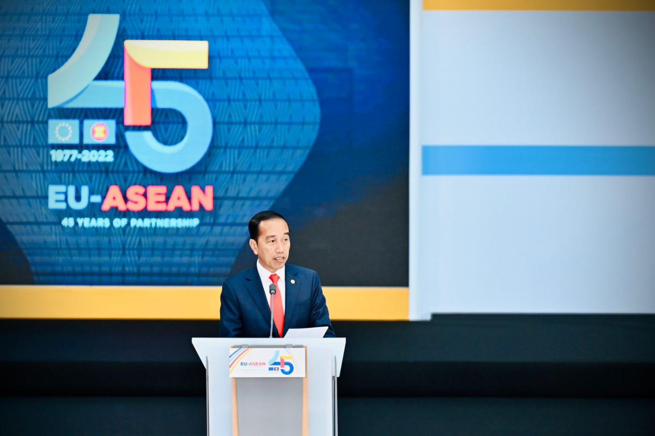 Presiden Jokowi mendorong Kemitraan ASEAN-Uni Eropa untuk bekerja sama demi masa depan ASEAN, Uni Eropa dan dunia yang lebih sejahtera dan berkelanjutan.