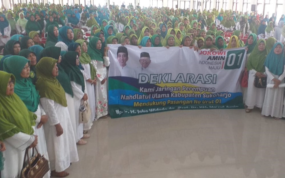 Sukoharjonews.com (Sukoharjo) – Jaringan Perempuan Nahdlatul Ulama (JPNU) Sukoharjo menggelar konsolidasi menghadapi Pemilihan Presiden (Pilpres). JPNU Sukoharjo konsolidasi untuk pemenangan pasangan Joko Widodo-Ma’ruf Amin. Konsolidasi yang digelar di Gedung PGRI tersebut diikuti ribuan peserta dari semua unsur NU. Baik Pengurus Cabang NU (PCNU) maupun Badan Otonom NU seperti Muslimat, Fatayat, serta Ikatan Pelajar Putri NU (IPPNU) mulai ranting hingga cabang.