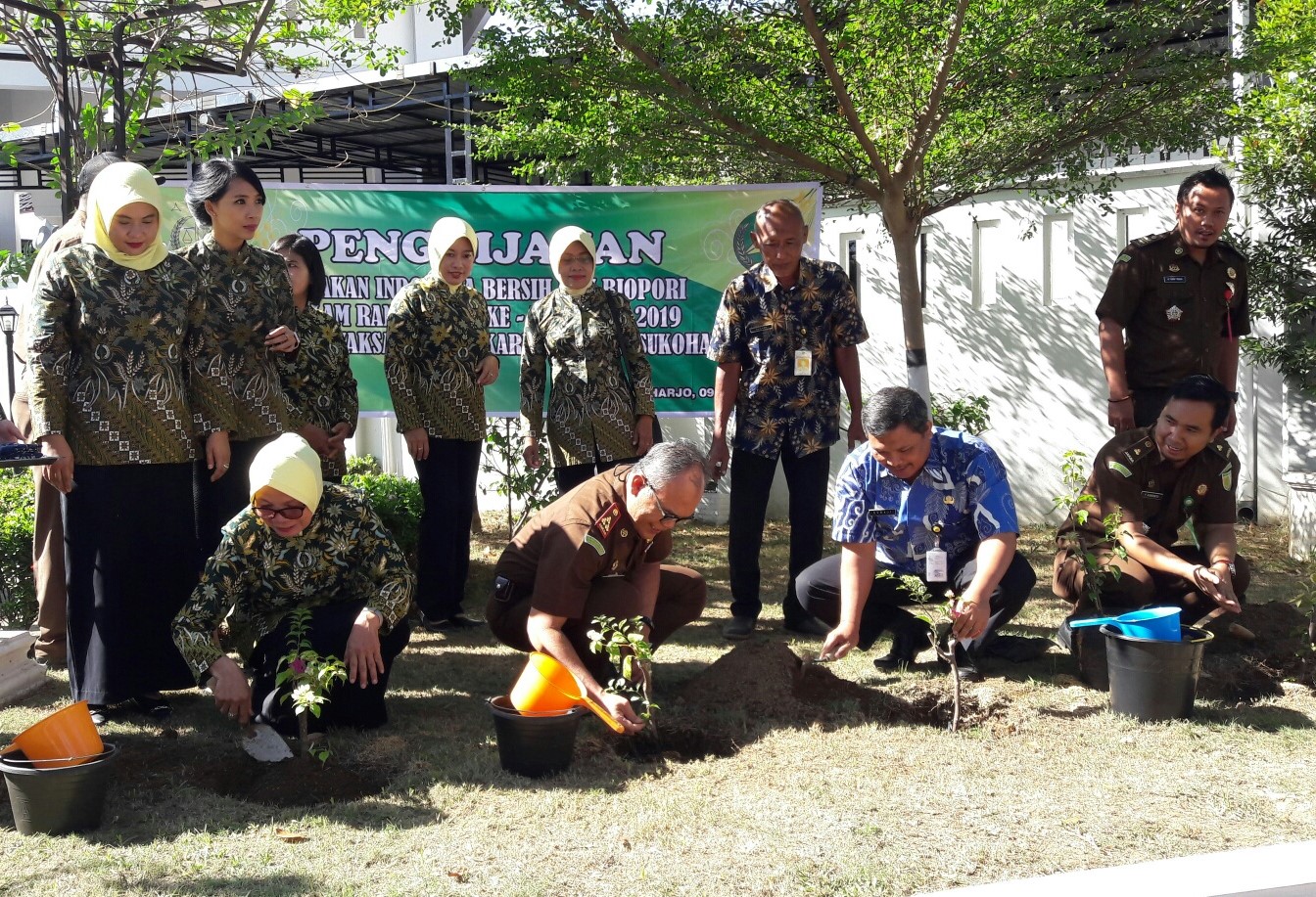 Sukoharjonews.com (Sukoharjo) – Dalam rangka Hari Bhakti Adhyaksa Ke-59, Kejari Sukoharjo melakukan sejumlah kegiatan sosial. Selain sunatan massal, Kejari juga melakukan gerakan penghijauan dengan penanaman pohon di taman kota depan Kejari. Penanaman dipimpin oleh Kepala Kejari Tatang Agus Volleyantono. Terlihat ikut dalam kegiatan itu Kepala Dinas Perumahan dan Kawasan Permukiman Suraji.