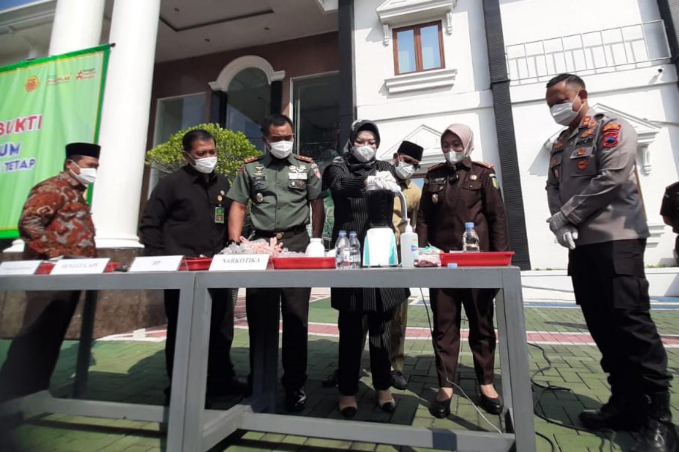 Acara pemusnahan dihadiri langsung Bupati Etik Suryani, Ketua DPRD Nurjayanto, Kapolres AKBP Anggaito Hadi Prabowo, Dandim Letkol Inf Supri Siswanto, dan lainnya.