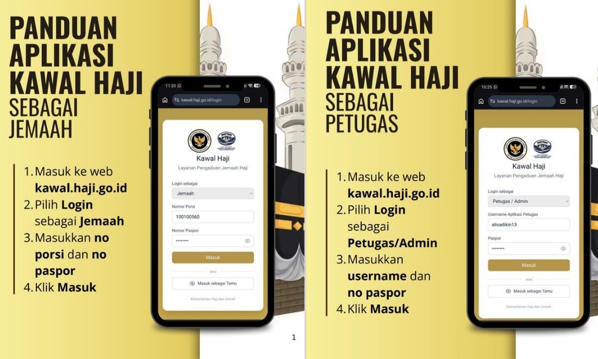 Aplikasi Kawal Haji dapat diakses melalui laman resmi kawal.haji.go.id dan dirancang dengan fitur yang memudahkan pengguna, baik jemaah maupun petugas, dalam melaporkan berbagai kendala di lapangan, memantau tindak lanjut laporan, hingga memberikan tanggapan terhadap pengaduan yang ada.