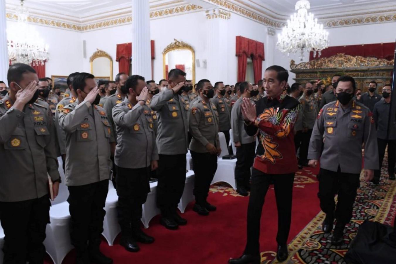 Sukoharjonews.com (Jakarta) – Presiden RI Joko Widodo (Jokowi) mendorong jajaran Kepolisian Negara Republik Indonesia (Polri) untuk bekerja keras mengembalikan kepercayaan publik kepada institusi Polri. Hal tersebut disampaikan Jokowi saat memberikan pengarahan kepada jajaran Polri mulai dari para pejabat utama Mabes Polri, kepala kepolisian daerah (kapolda), hingga kepala kepolisian resor (kapolres) seluruh tanah air di Istana Negara, Jakarta, Jumat (14/10/2022).
