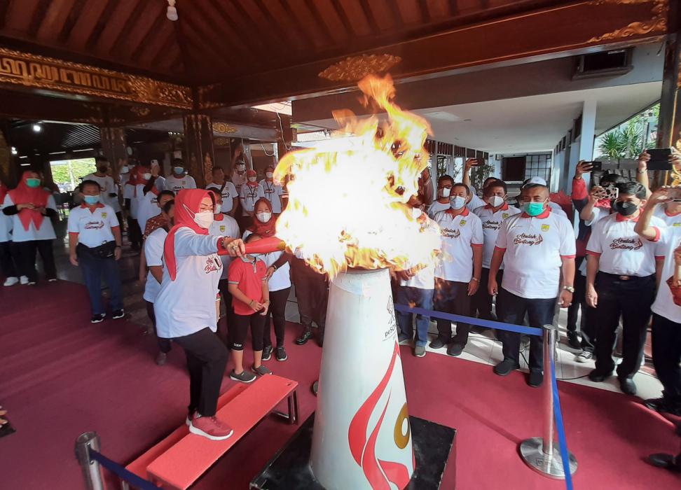 Sukoharjonews.com (Bendosari) – Kabupaten Sukoharjo menerima kirab obor virtual dan ekspresi seni budaya Pekan Special Olympic Nasional (PeSONas) 2022. Estafet obor PeSONas tersebut diterima langsung Bupati Sukoharjo, Etik Suryani, Wakil Bupati, Agus Santosa dan pejabat Forum Koordinasi Pimpinan Daerah (Forkopimda) di Pendopo Graha Satya Praja, Jumat (11/2/2022).