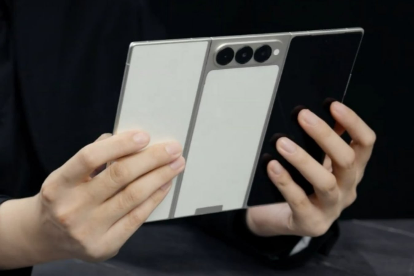 Ponsel ini memiliki layar 9,94 inci yang dapat dilipat ke dalam menjadi dua bagian, didukung oleh pengaturan engsel ganda yang terdiri dari engsel tetesan air untuk sisi kanan dan engsel yang lebih besar yang dapat dilipat di bagian atas.