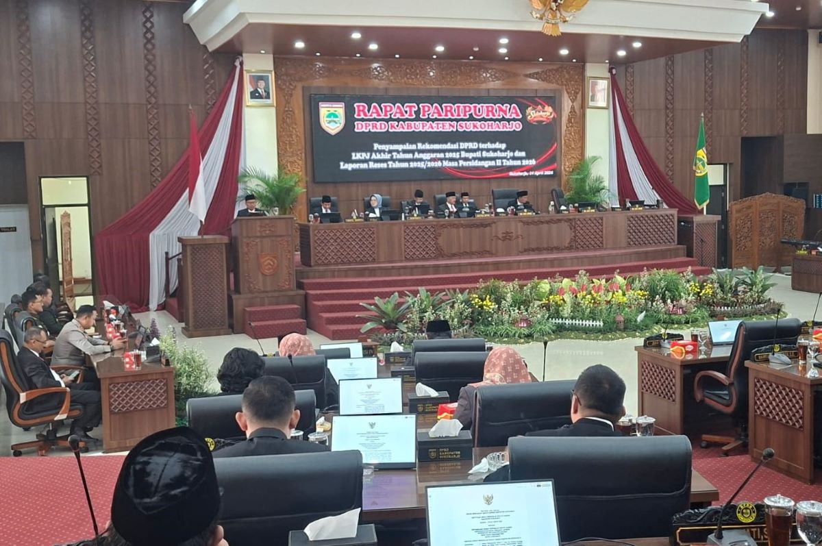 Sukoharjonews.com – DPRD Kabupaten Sukoharjo menggelar Rapat Paripurna dengan agenda Penyampaian Rekomendasi DPRD terhadap LKPJ Akhir Tahun Anggaran 2025 Bupati Sukoharjo, Selasa (14/4/2026). Dalam agenda tersebut, DPRD memberikan 24 catatan strategis sebagai rekomendasi kepada Bupati.