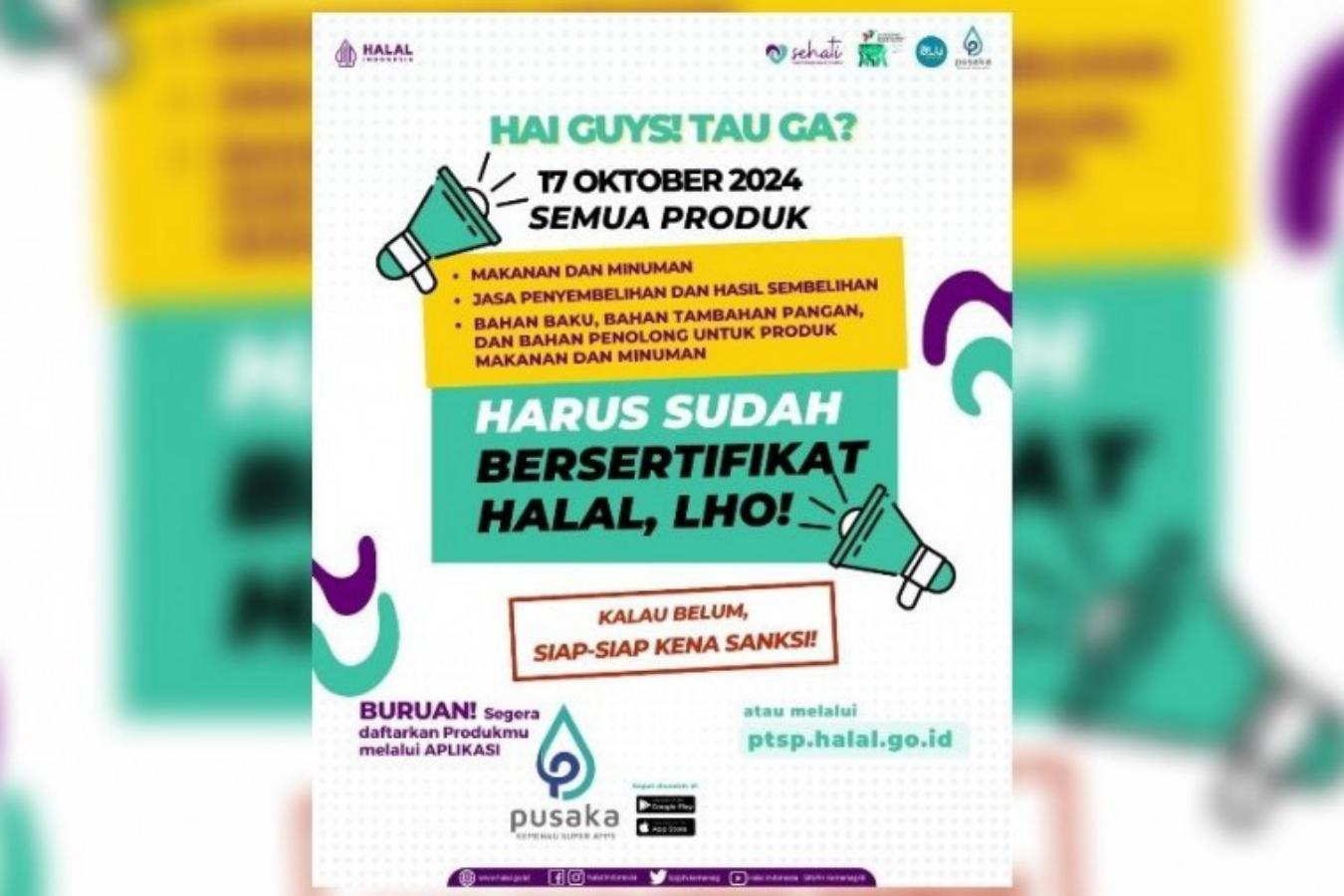 “Karenanya, sebelum kewajiban sertifikasi halal tersebut diterapkan, kami mengimbau seluruh pelaku usaha untuk segera mengurus sertifikat halal produknya,” imbuh Aqil.