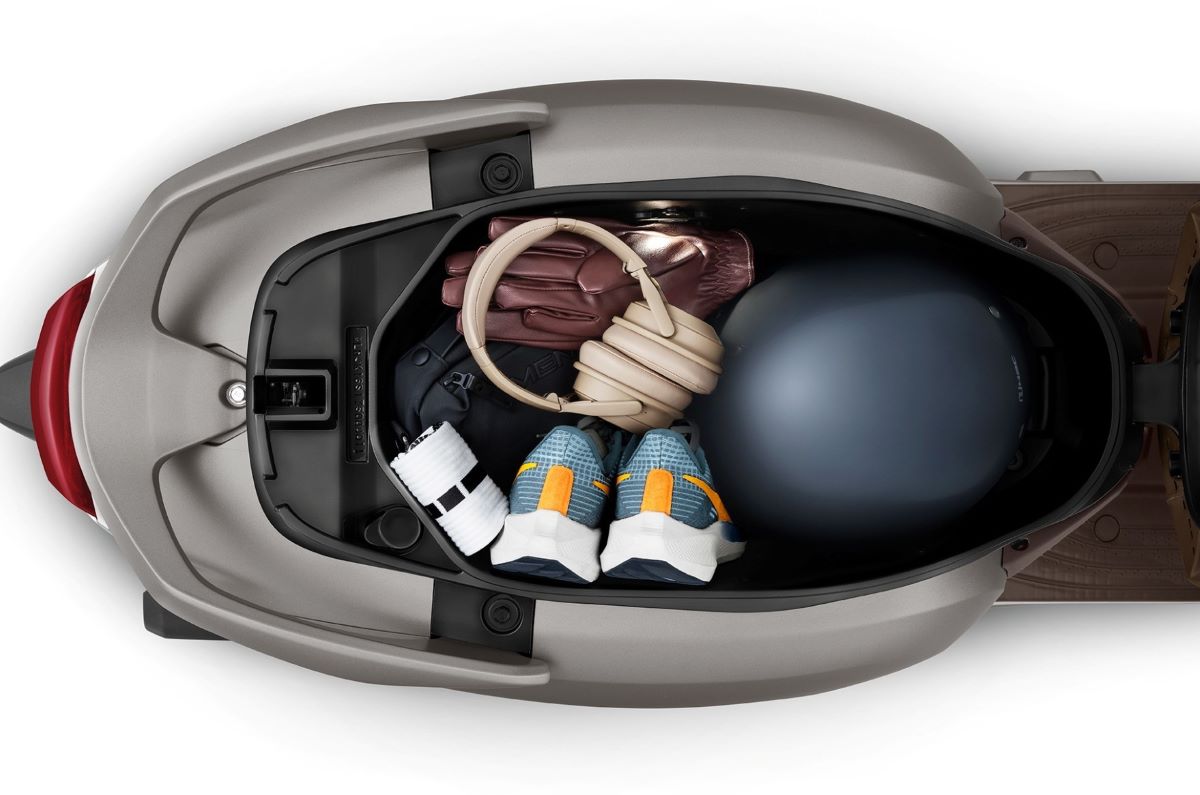 Kompartemen penyimpanan di bawah jok memiliki kapasitas 30 liter dan dilengkapi lampu LED di bawahnya. Dapat menampung helm, tas, dan barang-barang pribadi, menjadikannya sempurna untuk gaya hidup perkotaan sejati.