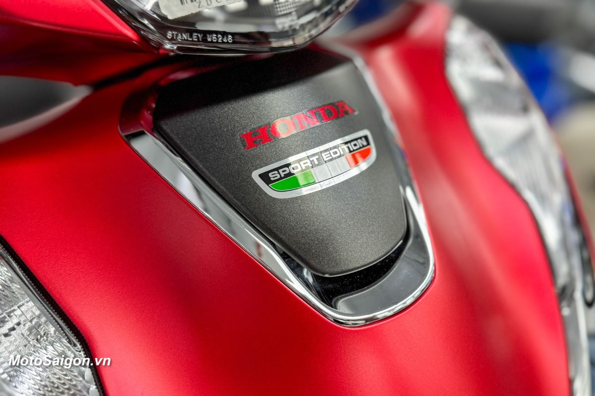 Detail spesifik dari Sport Edition meliputi logo SH krom dengan warna sporty, logo Honda merah krom, jahitan merah pada jok, grafis Performance bergaya bendera Italia pada fairing, dan stiker “Made in Italy” pada spatbor depan.
