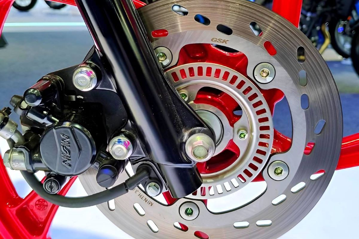 Detail kecil seperti kaliper rem depan berwarna hitam meningkatkan tampilan yang kokoh dan premium.