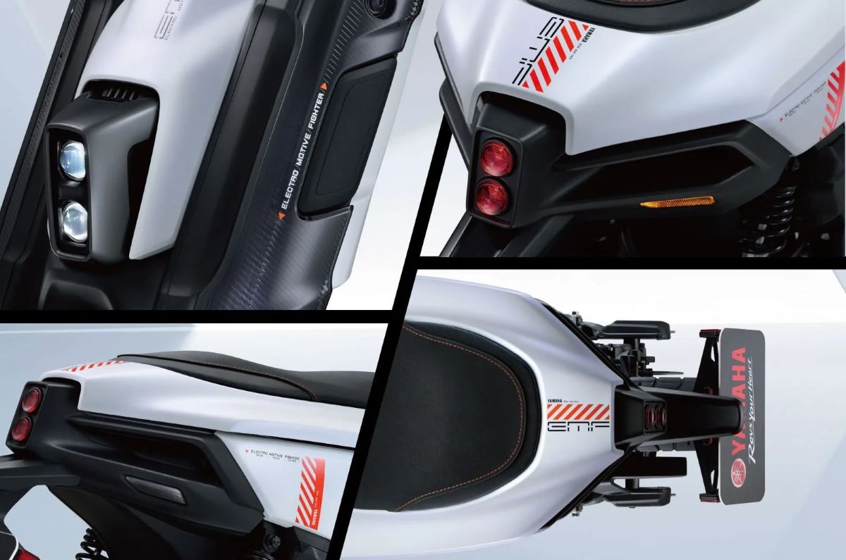 Yamaha EMF melepaskan diri dari citra skuter listrik pada umumnya dengan garis-garis tajam dan bodi kotak, memberikan kesan lebih seperti robot tempur daripada kendaraan praktis.