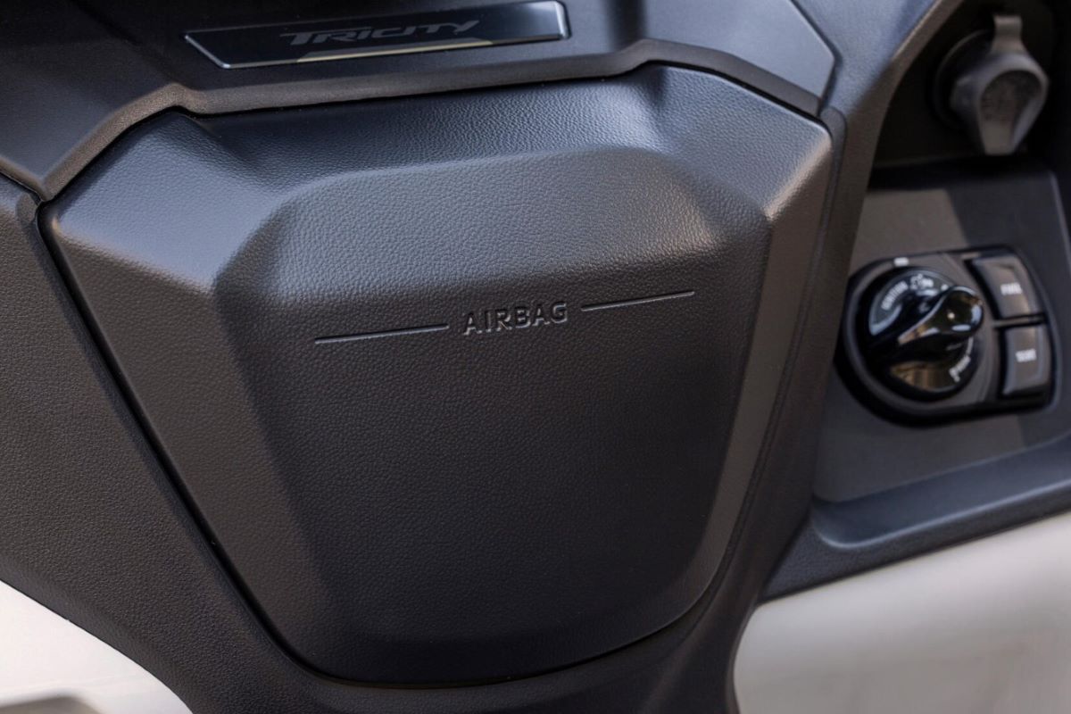 Sistem airbag Tricity 300 terletak di panel depan kendaraan dan dirancang untuk melindungi pengemudi jika terjadi tabrakan frontal.