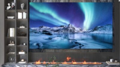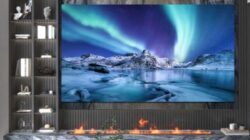Sasis vertikalnya memiliki lapisan bertekstur gelombang putih dengan aksen RGB yang halus. Desainnya berfokus pada estetika dan performa, sehingga cocok untuk pengaturan hiburan rumah, kamar tidur, studio, atau ruang kerja profesional tanpa menghabiskan banyak ruang.