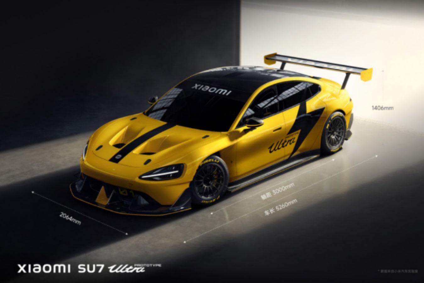 Xiaomi telah mengurangi bobot SU7 Ultra dengan memasukkan bahan serat karbon secara ekstensif ke seluruh mobil. Pengurangan bobot yang agresif ini menjadikan bobot total mobil menjadi 1900kg yang luar biasa. Desain aerodinamis SU7 Ultra memprioritaskan pembangkitan downforce, mencapai tingkat yang bahkan melebihi bobot mobil itu sendiri.