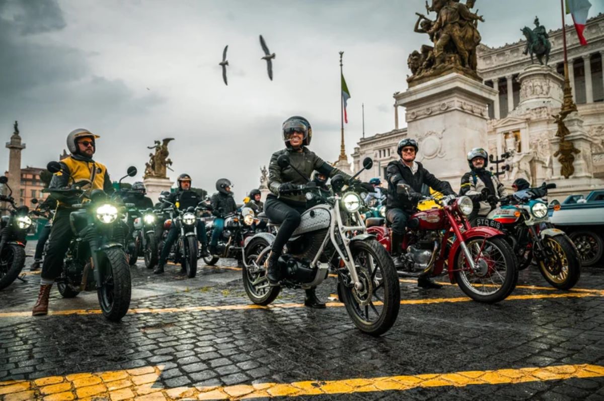 Konvoi di ibu kota Italia dipimpin oleh model baru ini, yang bergabung di garis start dengan sejumlah motor klasik dan vintage dari sejarah perusahaan India tersebut.