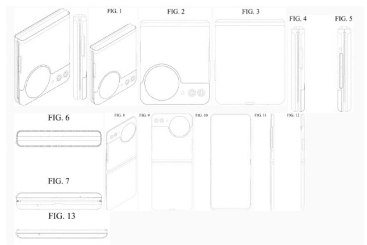 Perangkat yang ditunjukkan dalam pengajuan tersebut jelas mengikuti desain clamshell ala Galaxy Z Flip yang sudah dikenal. Namun, satu detail menonjol: layar penutupnya.