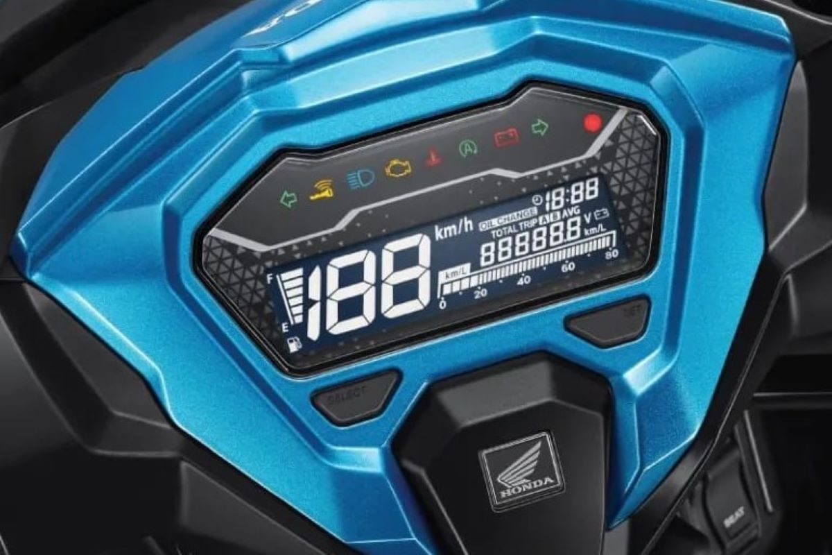 • Layar speedometer baru, menampilkan informasi lengkap termasuk kecepatan, jarak, voltase baterai, pengingat ganti oli, dan jam